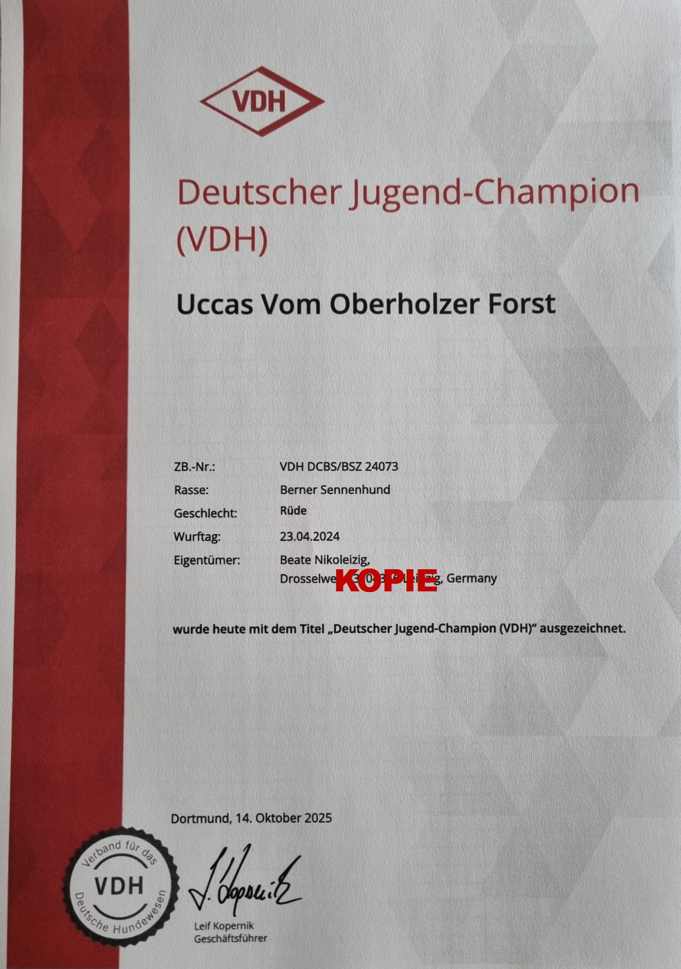 V1 CACIB-J CAC-J BOB JUGENDSIEGER (JK)